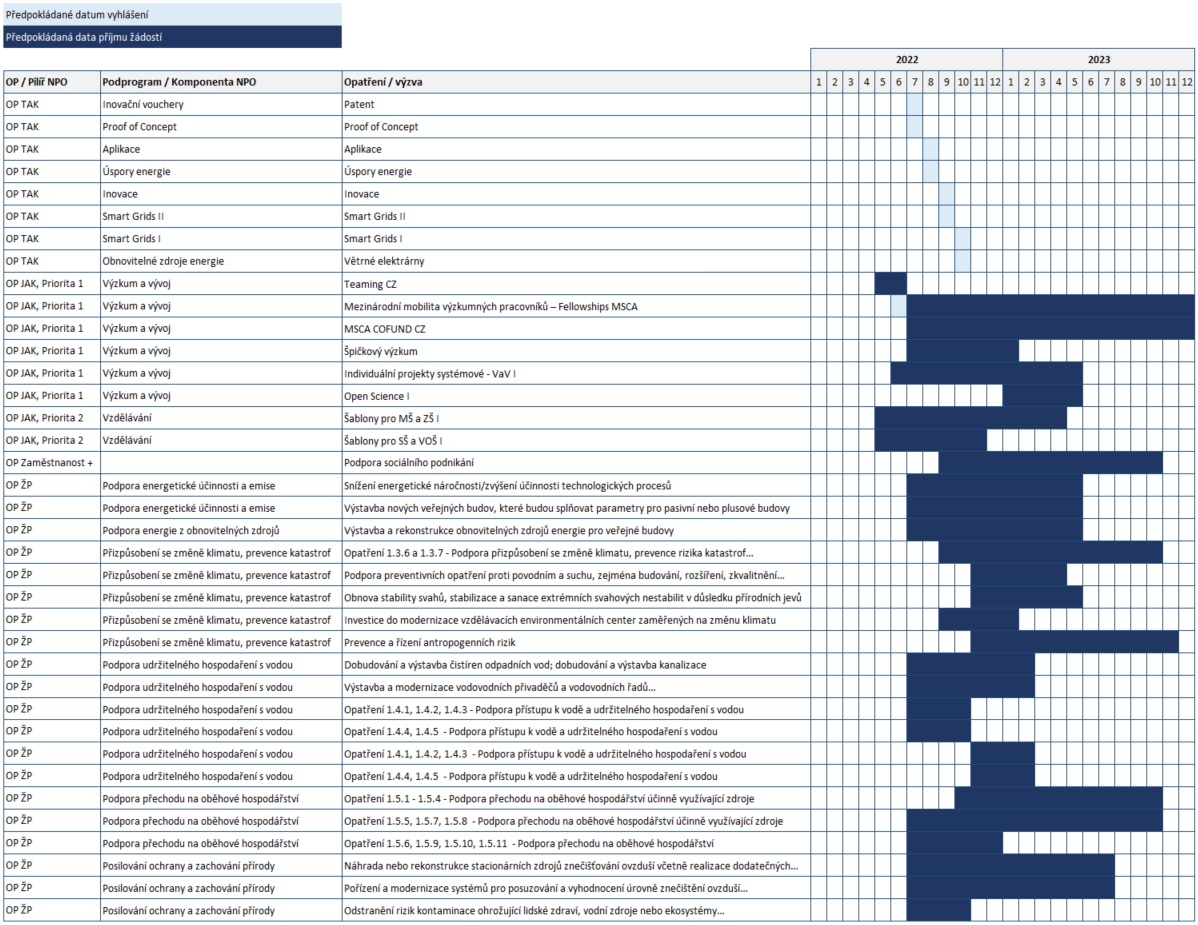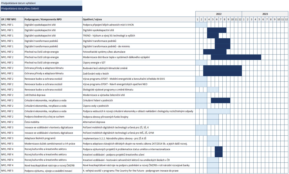 A. Harmonogram výzev NPO na roky 2022 a 2023